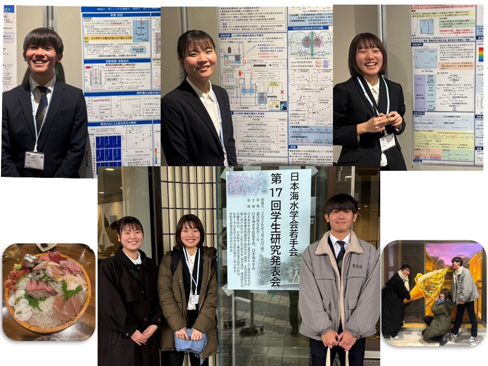 B4猪口さん、木名瀬くん、小出さんが、日本海水学会若手会第17回学生研究発表会(金沢)にて研究成果を発表しました。